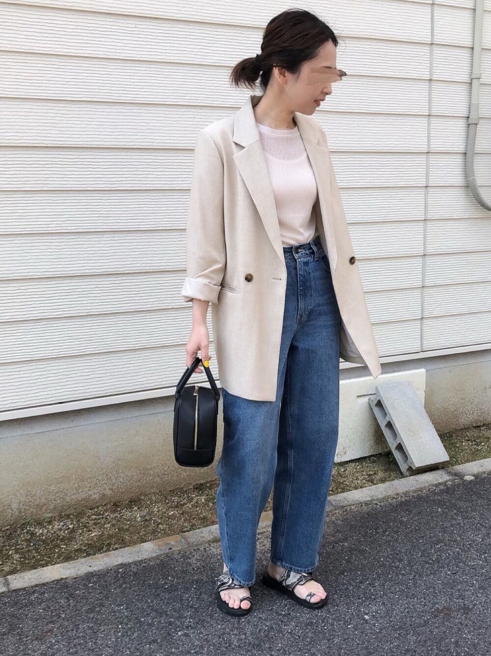 リネンジャケットは去年の♩ ベージュってことでキレイめになるので、ワイドデニムと🐍サンダルで大人カジュアル💙 閲覧感謝します✰ いいね、お気に入り、フォローも嬉しいです𓀤𓀥 ありがとうございます♥