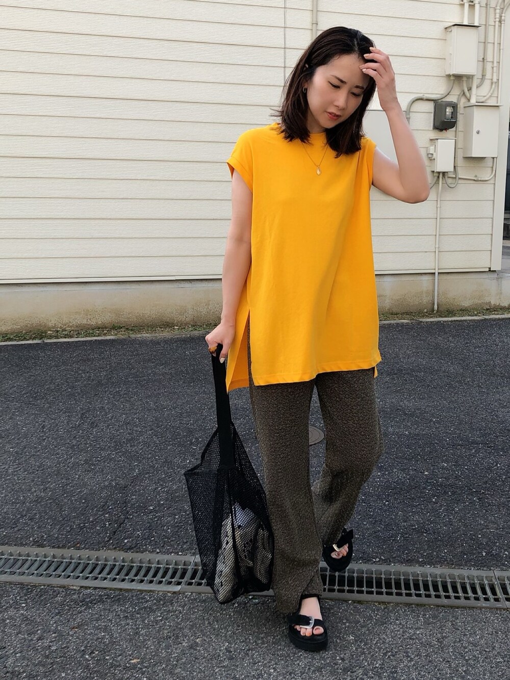 maccoのタンクトップ「オーバーサイズノースリーブTee」を使ったコーディネート