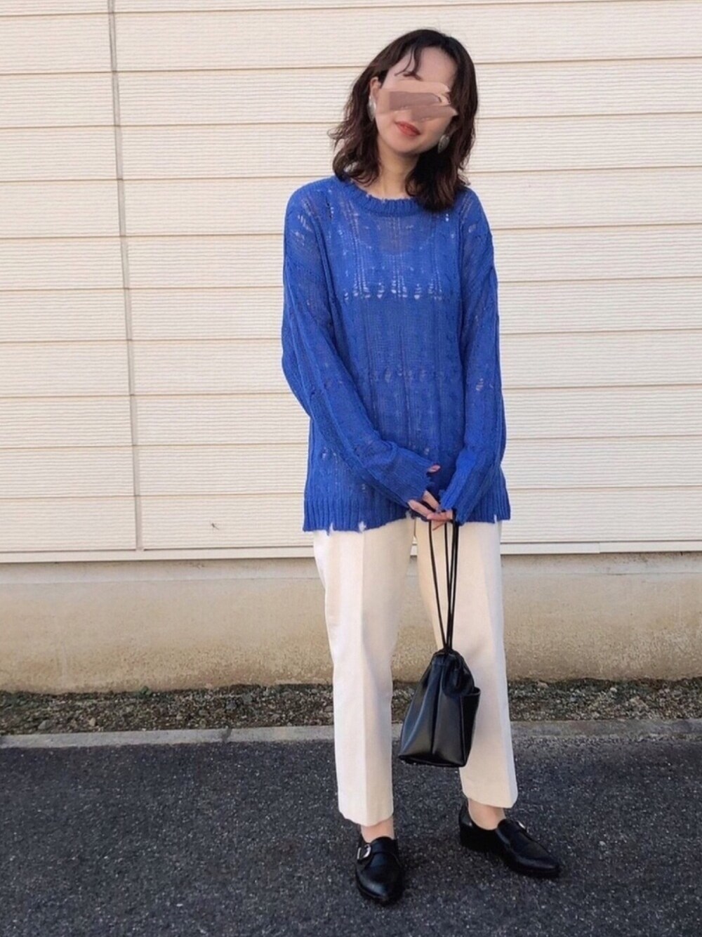 ダメージニット🧶 普段は選ばないけど、このニットは断然青🧞♂️でした⌣̈⃝ マニッシュも気になる今日この頃ˊ°̮ˋ💭 撮影者👦🏻は後ろの壁の🕷が気になってしゃーない… 閲覧感謝します✰ いいね、お気に入り、フォローもとても嬉しいです𓀤𓀥 どうもどうもありがとうございます♥