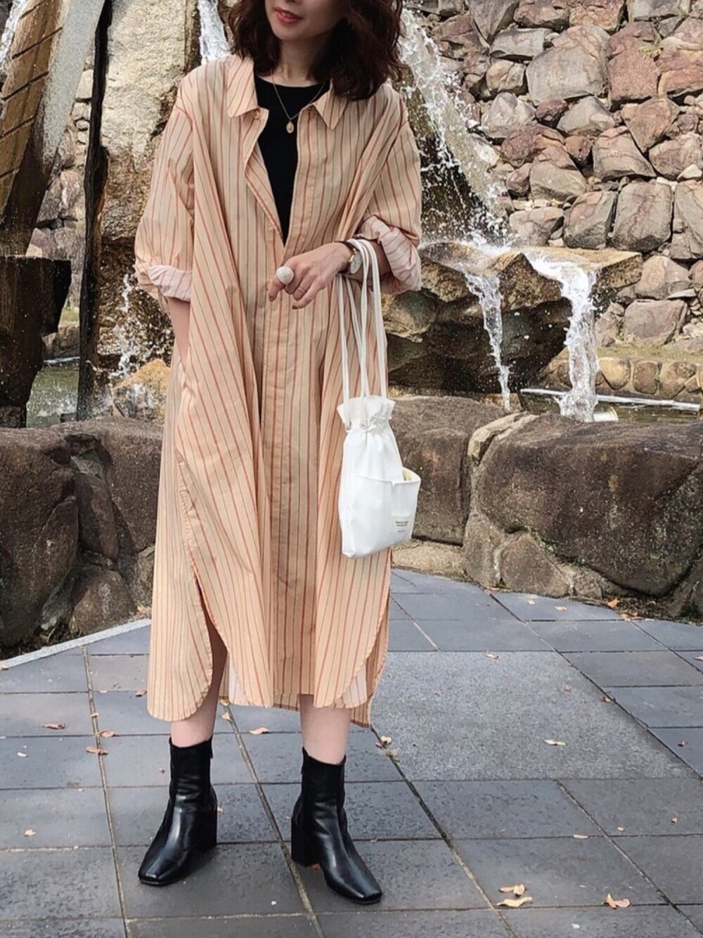maccoのワンピース「デザインスリーブシャツワンピース」を使ったコーディネート