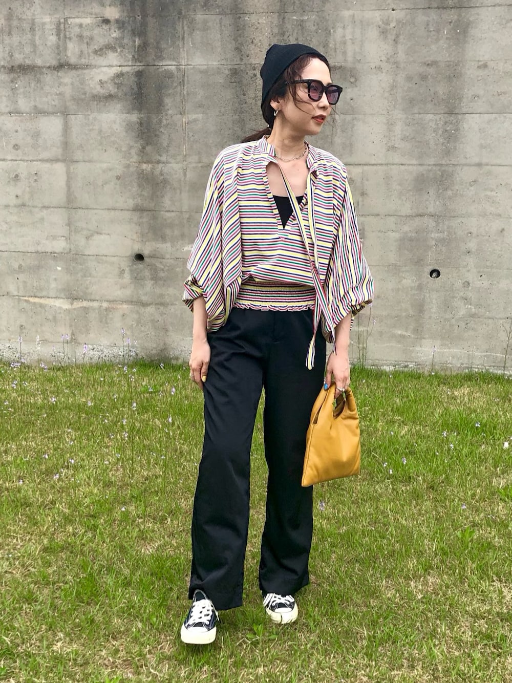 maccoのTシャツ/カットソー「ウエストシャーリングボーダートップス」を使ったコーディネート