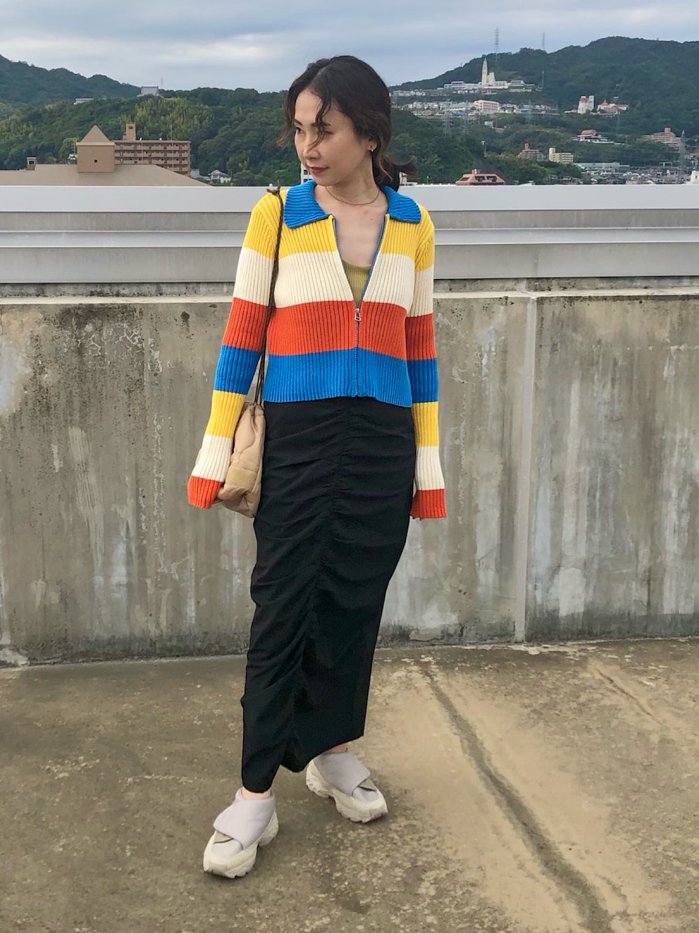 maccoのニット/セーター「太ボーダー襟付きリブニット」を使ったコーディネート