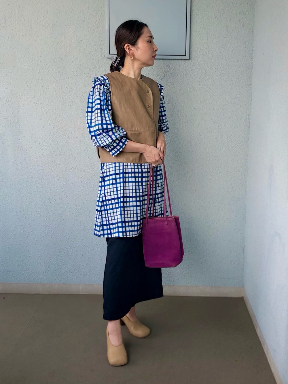 maccoのシャツワンピース「【SANSeLF】 big collar gingham tunic sanw67」を使ったコーディネート