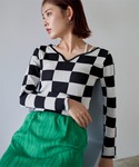 maccoのニット/セーター「ハートネックチェッカー柄ショートトップス」を使ったコーディネート