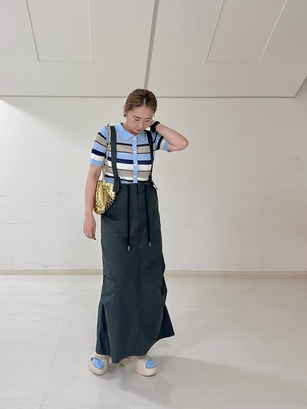 maccoのTシャツ/カットソー「シアーボーダーポロ/ポロシャツ/シアーニット」を使ったコーディネート