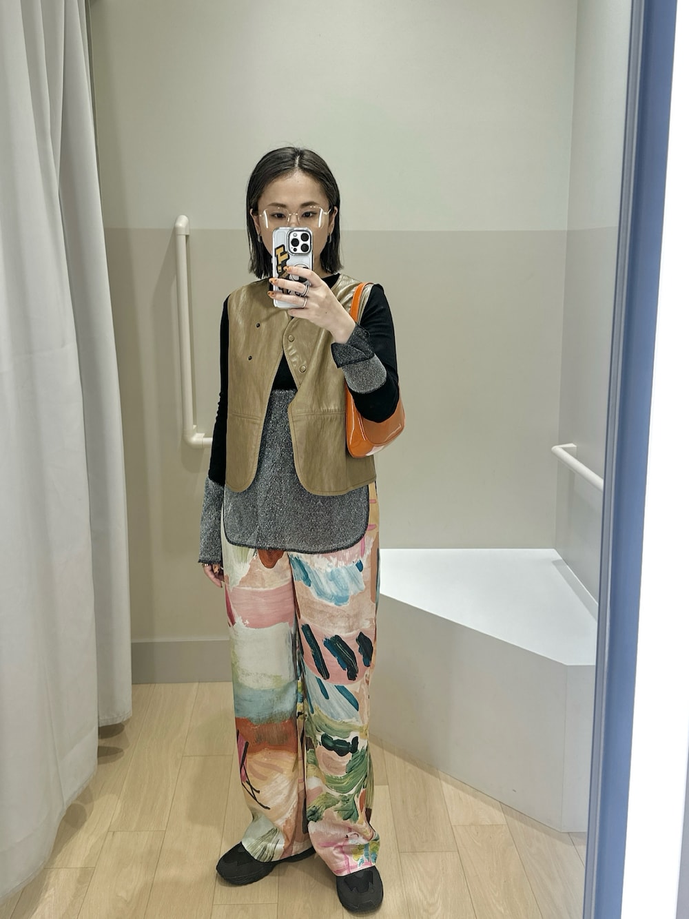 maccoのベスト「フェイクレザー2WAYベスト」を使ったコーディネート