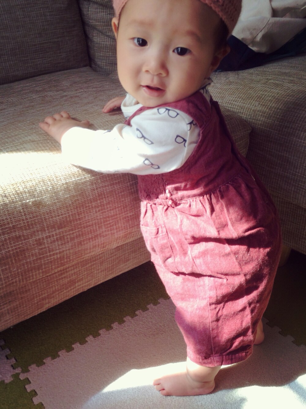 近くの公園に散歩に行こう〜!🐷💞 のコーデ! おさがりのPATACHOUのオーバーオールで❤️🔆
