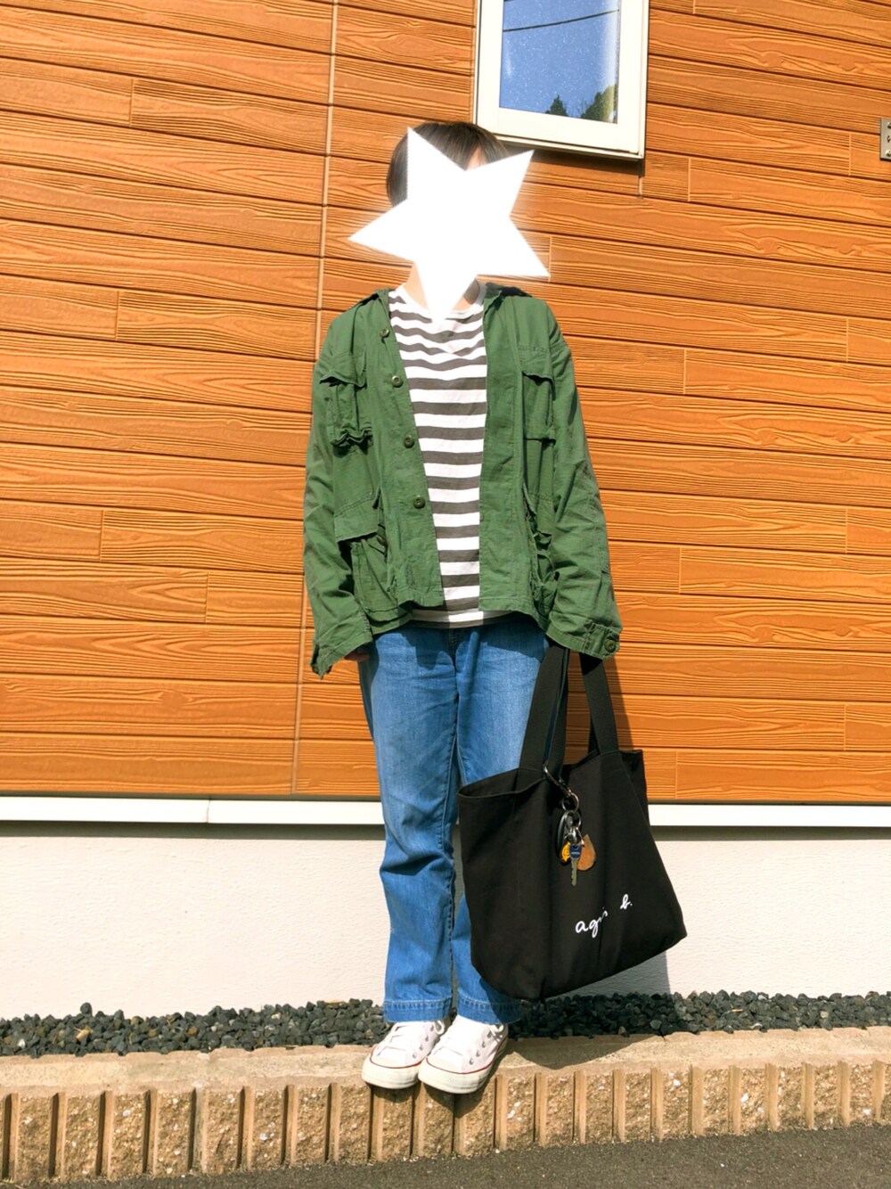 前のコーデと あんま変わらんかった!笑 カーキとボーダーの組み合わせ 好きだ♡