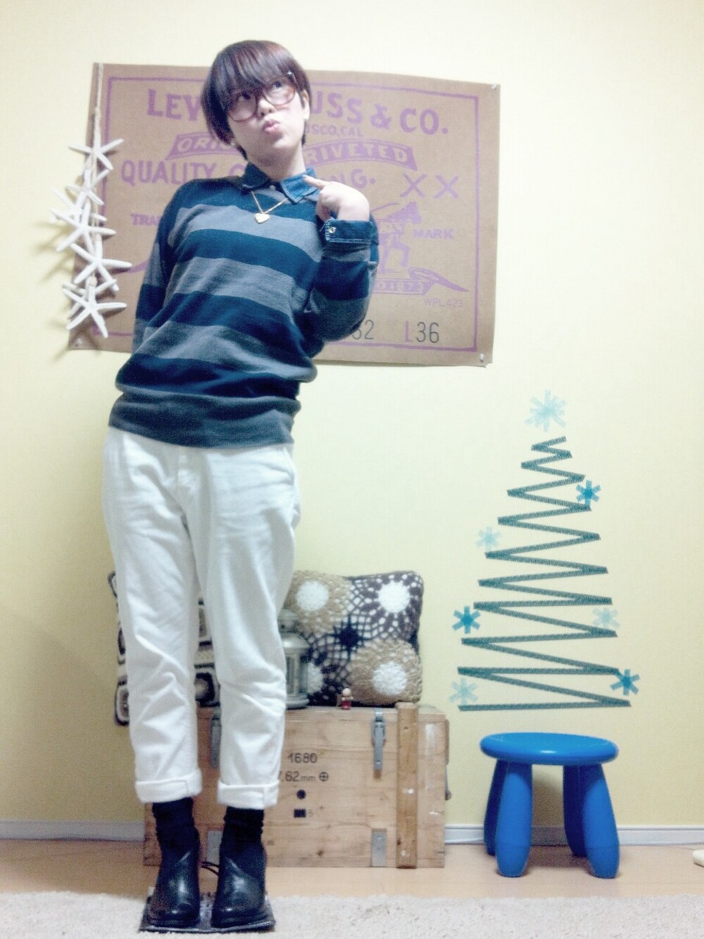 後ろの壁 マステでXmas仕様にデコった♪ うしし♥︎