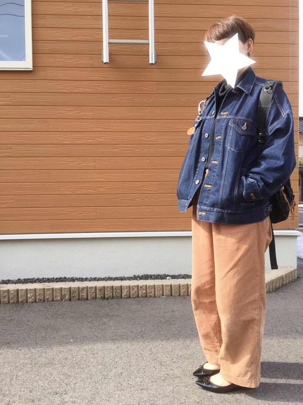 久々に☆ ゆるゆるコーデ ビッグなGジャンに ゆるいコーデュロイパンツ そして! 噂のGUのバレエシューズ☆ 髪を短くして ワカメちゃんみたいになりました☆
