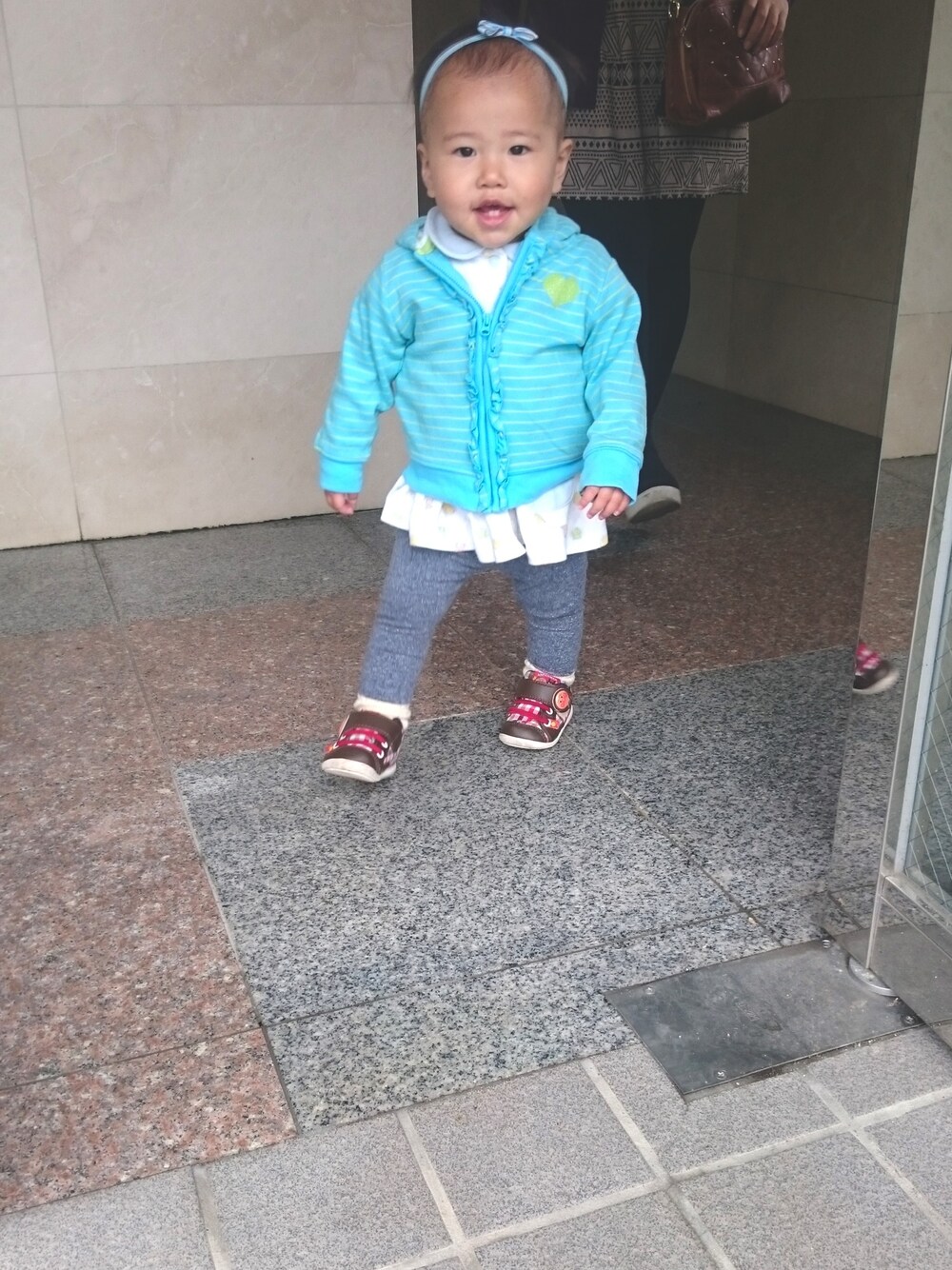 アメリカ🇺🇸子供服コーデ カーターズのワンピースの上に カーターズのパーカー ボトムスはGAPのレギンス 見えないけどラメラメ入り😄 靴は、この年頃の子達のヒーロー アンパンマン😄 カチューシャはハンドメイド🌷 髪の毛なさすぎて、カチューシャしててもよく男の子に間違われてました〜😅