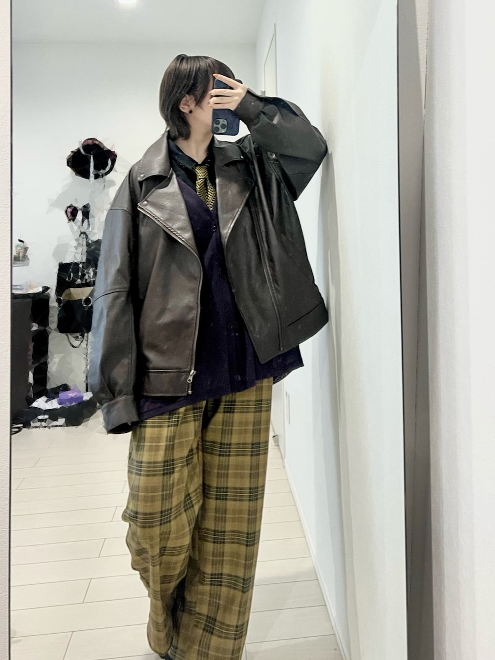 於菟のライダースジャケット「エコレザーBIGライダース」を使ったコーディネート