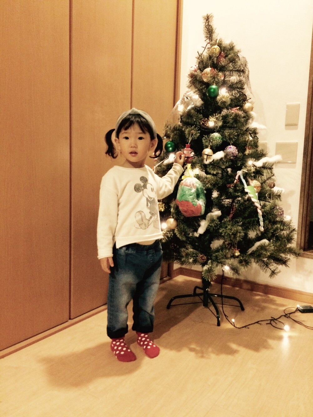 ON(保育園着) 先週末に自宅に飾ったクリスマスツリー🎄 母⏩今年はサンタさんに何をお願いするの? 娘⏩えーとね、サンタさんの国‼️ 確かに国ごともらったら、毎日プレゼント貰えるよね… ずるいよ、あんた。