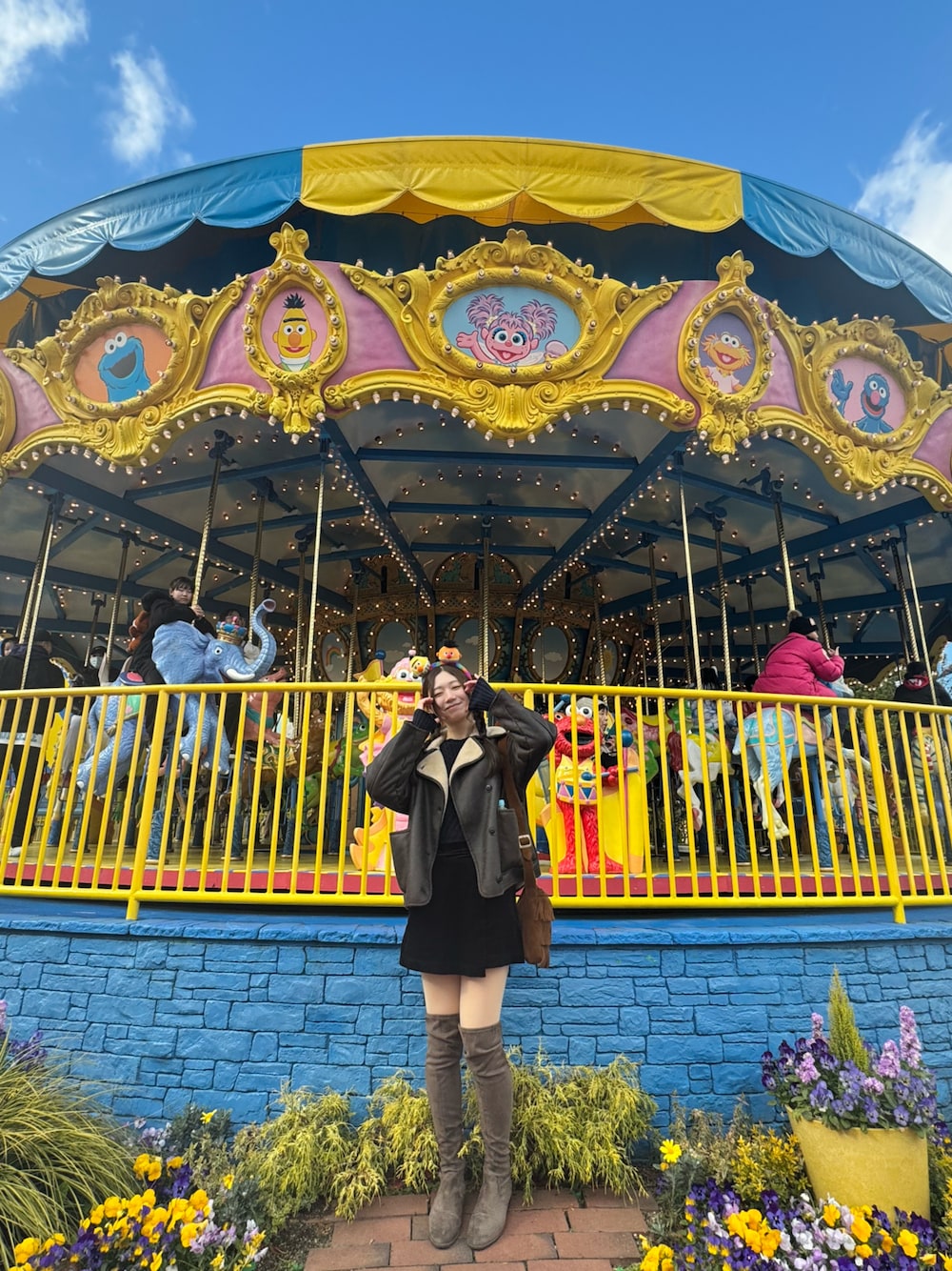 ユニバ行ってきた〜🤎 シンプルコーデにエルモのカラフルカチューシャでアクセント🏳️🌈