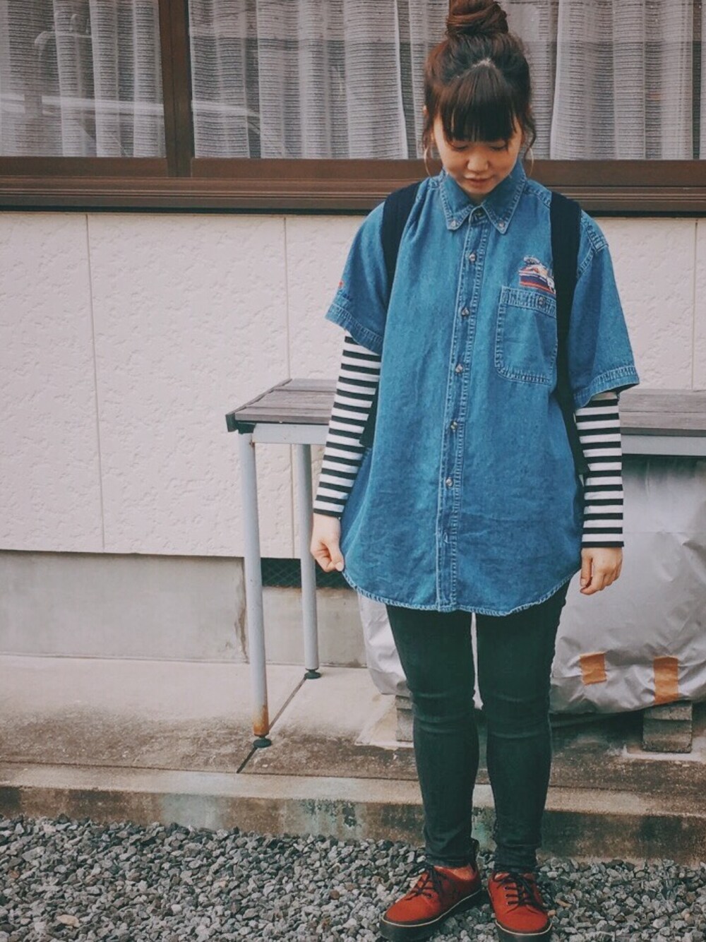 おばあちゃん家にBBQしにきた🍖👵🏽👴🏽🤙🏽 一目惚れして買った80年代アメリカで 作られた刺繍入りデニムシャツ👕🖤 どうしてもこれが早く着たかった🤤🤤🤘🏻