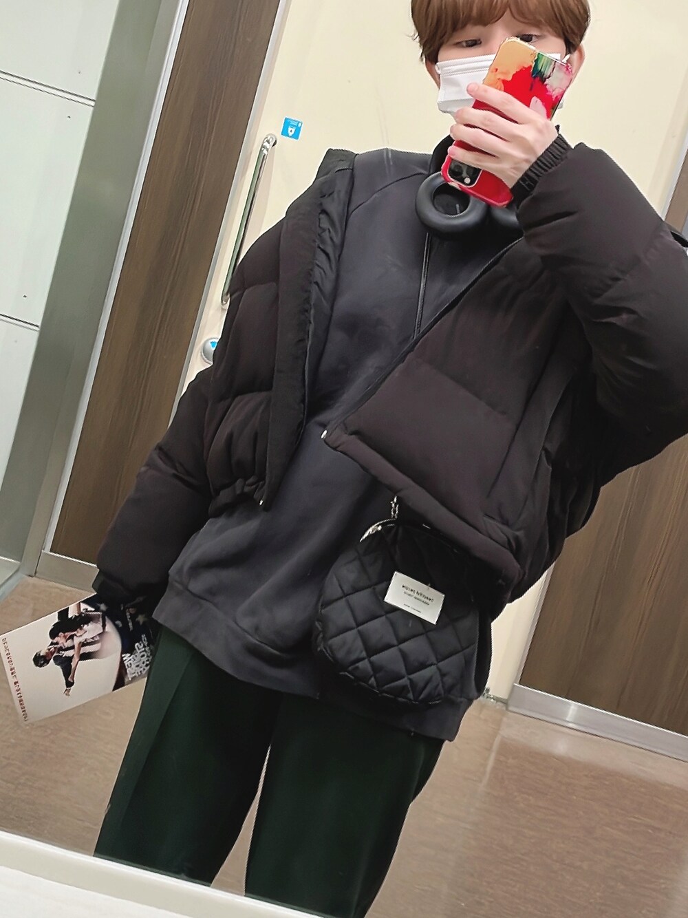 🎞 west side story 観た (寝坊して急いでこうなったコーデ) ブラックコーデにしようと思ったけど、 やっぱ色入れたくて暗めのグリーンパンツ◎ スウェットもダウンも暖かくて去年からこの合わせが多い。