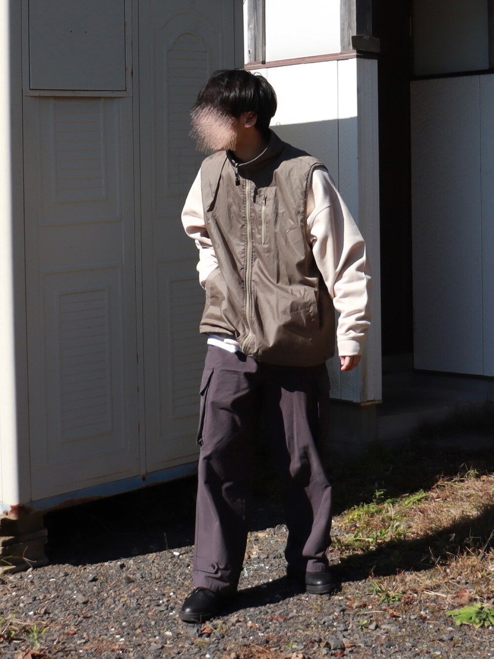 ベスト×カーゴパンツ このダサい感じがたまらんぜ。。。
