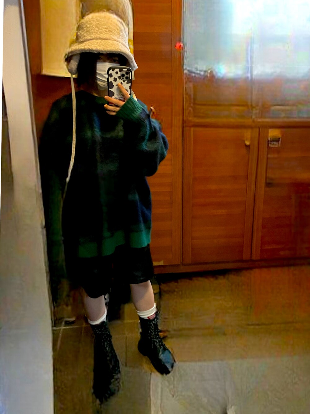 今回はクリスマスっぽくグリーンチェックのニットのコーデです🎄