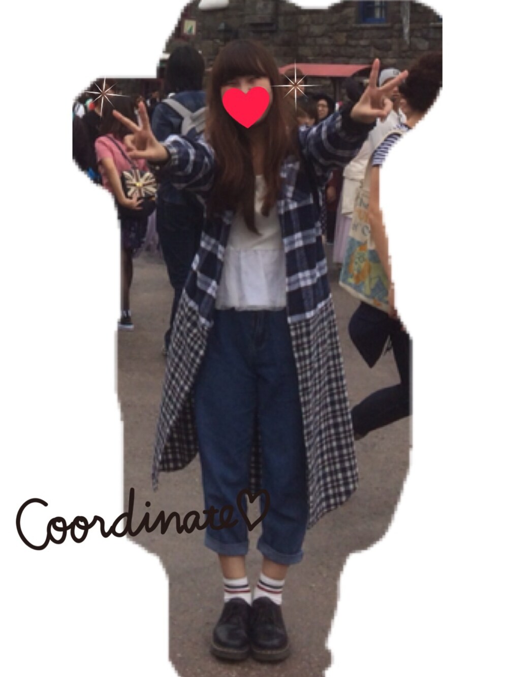 続けてこちら。 チェック切り替えロングシャツは 桃ちゃんが着てたもの*\(^o^)/* 可愛くて何回も着ちゃう笑 前を閉めるとロングスカートになるし 使い方がたくさん〜(^O^) 紺色可愛い! 桃ちゃんが、今日の服装で あげてたからまた売り切れるやろなぁ〜
