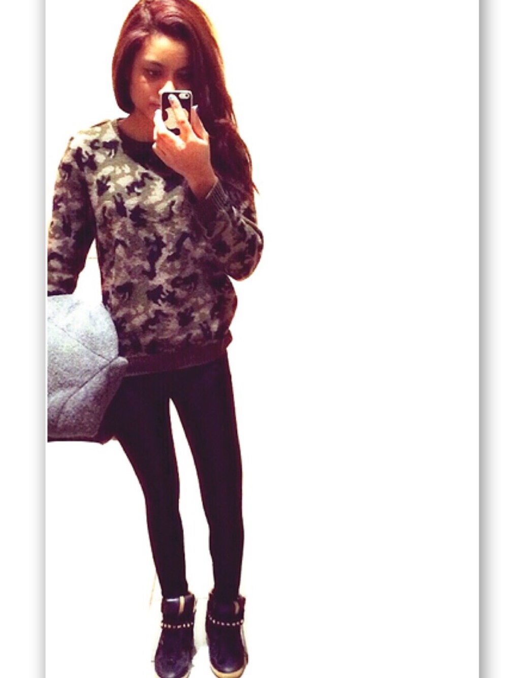迷彩ニットはダボっとしてる形です‼︎ パンツはレギンスの少し分厚い素材でとても動きやすいです♡