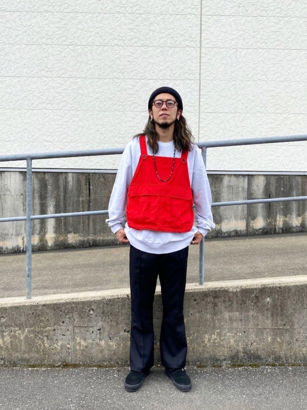 【 red 】 . . . よか色のベストを今更ゲットしました🙆🏻♂️✨ パンツは最近お気に入りでよく履いている 心斎橋のチャオパニックでゲットしたアイテム🔥🔥🔥 みんなも春物ゲットしてお洒落楽しもう〜〜🙌