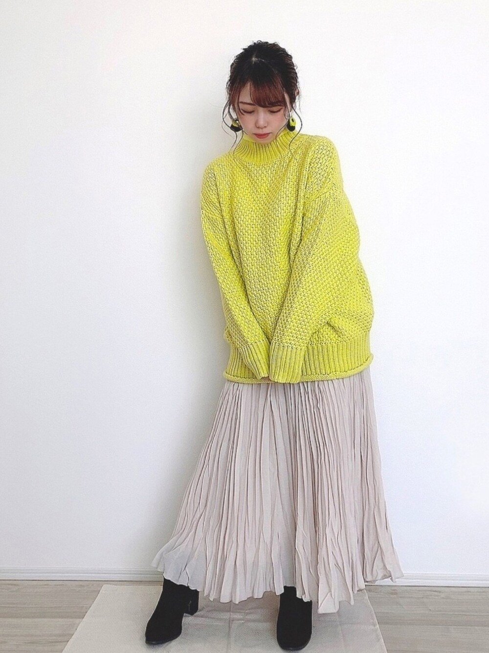 フォロー&いいねありがとうございます⸜︎︎︎︎❤︎︎⸝ アウターなしver この蛍光イエローのニットが可愛すぎて 即購入でした☺🙌❤ 派手だね っていつも言われますが…😂🙏笑 でわでわっ Instagram⇒mittayan