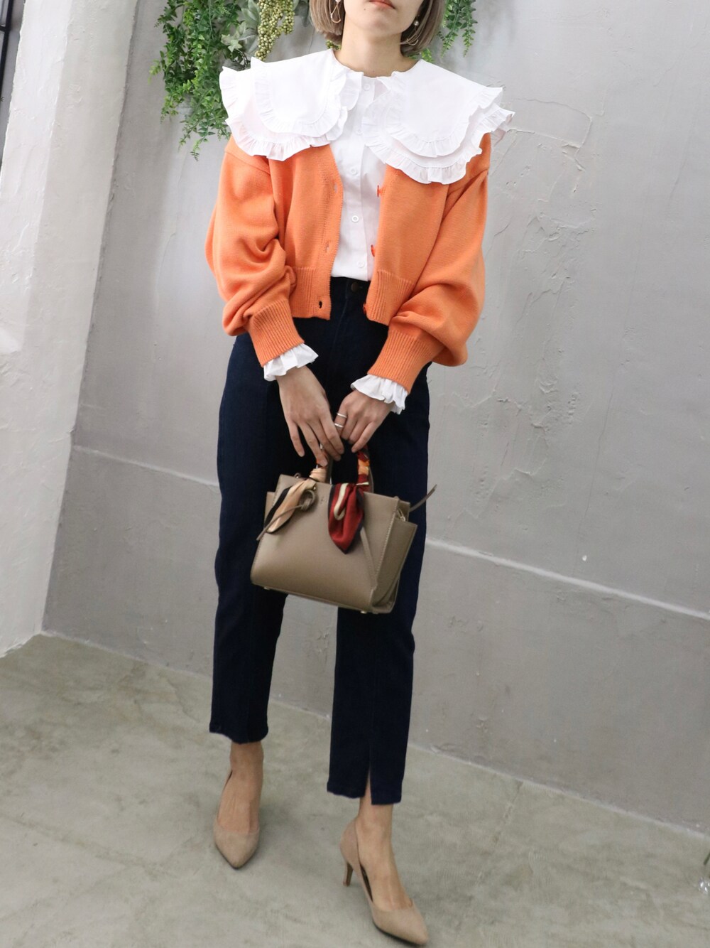 最近はオレンジ🍊がマイブーム! 韓国のビックカラーブラウスとカラーカーディガンの相性良き!