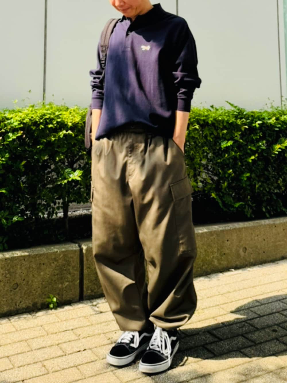 PENNESのネイビーポロに秋冬トレンドカラーのカーキのカーゴパンツを合わせました。 ブラックのスニーカーでまとめるといい感じに。 お気に入りのスタイリングです👕
