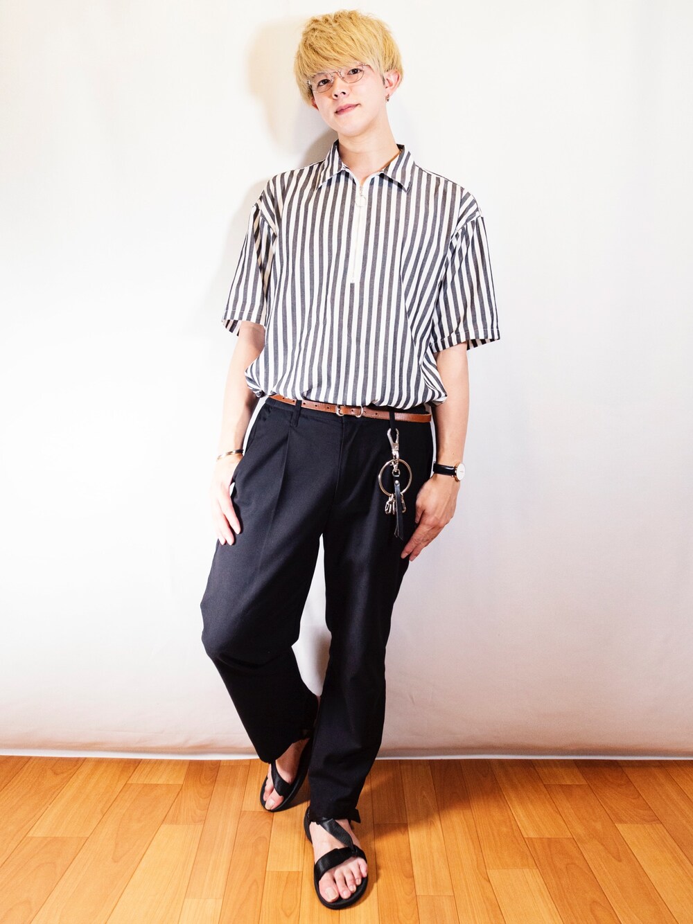 こんにちは! いつもいいね、お気に入りなどありがとうございます!✨ 今日は大人テイストなコーデを考えてみました。 ストライプ柄のハーフジップシャツをワイドパンツにタックインさせて、落ち着きを出しています。 ベルトはブラウンの細ベルト(HARE)を選び、さりげなく黒のワイドパンツのアクセントになるよう意識しました。 足元はGUのプチプラスポーツサンダルを合わせて抜け感を出しています。 金髪でチャラチャラした雰囲気にならないようにBEAMSの丸メガネで緩和しています。 …金髪は服の合わせ方が結構難しいですね😂笑 【YSKのプロフィール】 普段はカメラマンやWeb関係の仕事をしています! ずっとファッションには興味がなく、周りからも服がダサいと言われている毎日を20年間ほど過ごしていましたが、 去年から突然アパレル部門の仕事を担当することになったことをきっかけにファッションに挑戦し始めました! 今はファッションに興味がないし出来ればお金をかけたくないけど、 最低限おしゃれだと思われるコーデを組みたい! と思っている僕のような人に向けて、 参考になるプチプラコーデをご紹介していければと思っています✨ 今後もプチプラアイテムを中心に考案したコーデを投稿していきます! 投稿の励みになりますので、是非いいね、コメント、フォローしていただけたら嬉しいです! それでは☺️✨