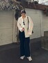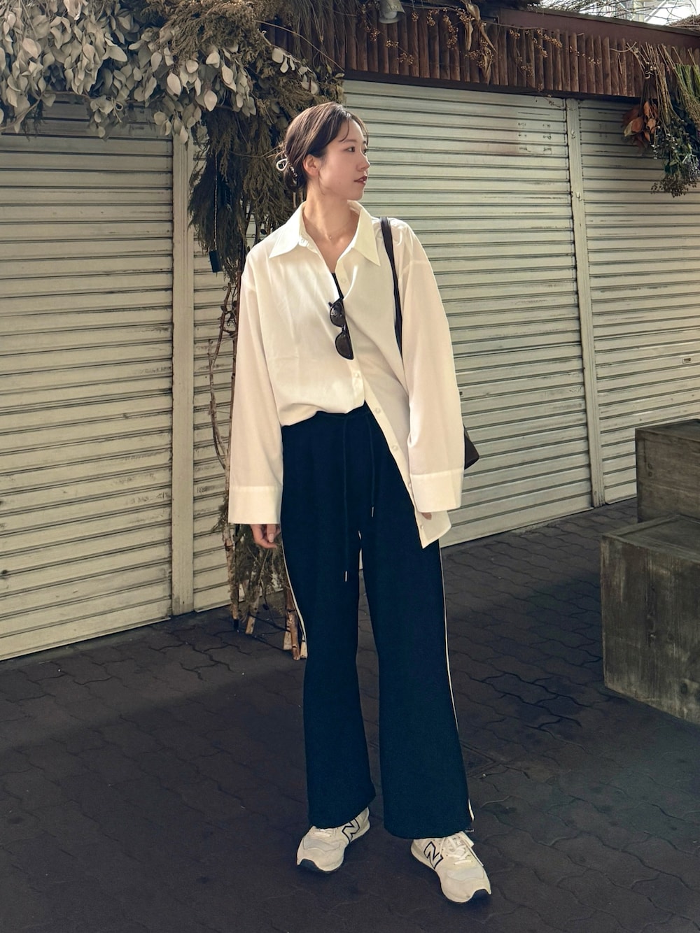 大人カジュアル! オーバーサイズシャツとラインパンツで大人カジュアルに! まとめ髪すると更にいい女風💘