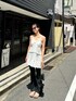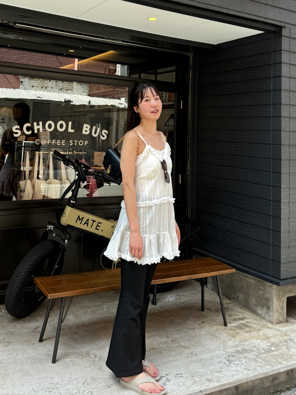 sasamin♡のキャミソール「フリル×コットンストライプビスチェディテールキャミチュニック」を使ったコーディネート