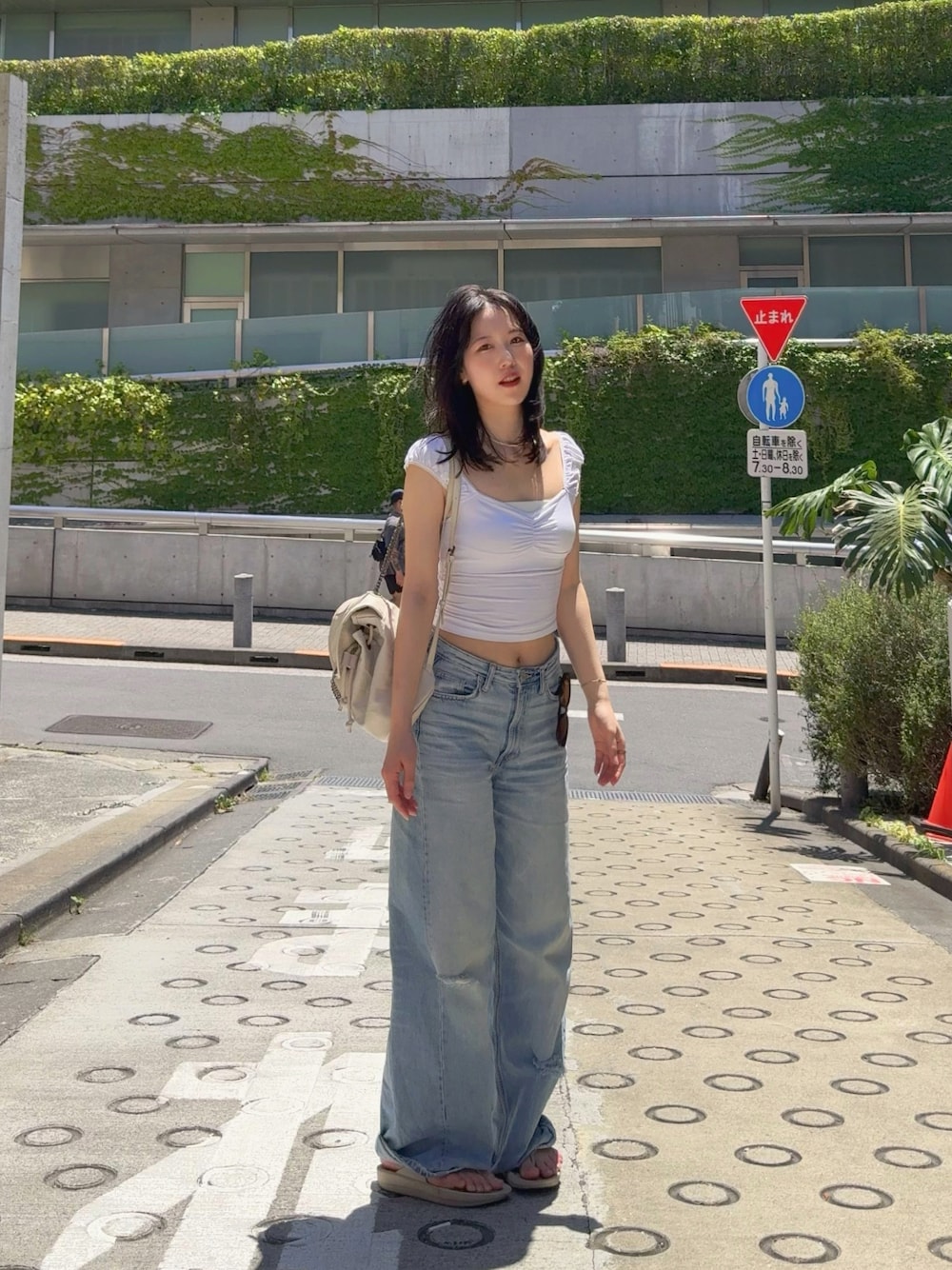 ノースリトップスにデニムがかわいい❤︎