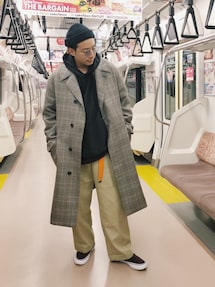 モヘアのカーディガンとパーカーを合わせました◎ パンツはチェックのワイドパンツを💁🏻♂️ ■着用サイズ■ cardigan → L parka → 2 pants → L shoes → 28.0