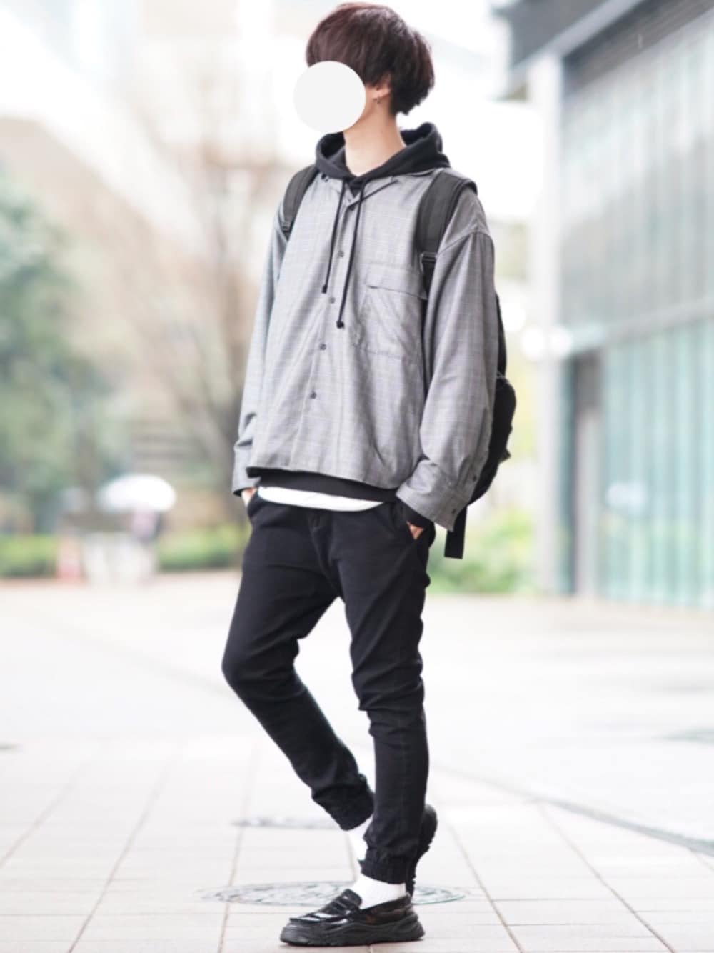 とっしーのシャツ/ブラウス「オーバーサイズ ストライプ/チェック柄 オープンカラーシャツ 長袖【ファッションインフルエンサーとっしー×EMMA CLOTHES 限定コラボ】」を使ったコーディネート