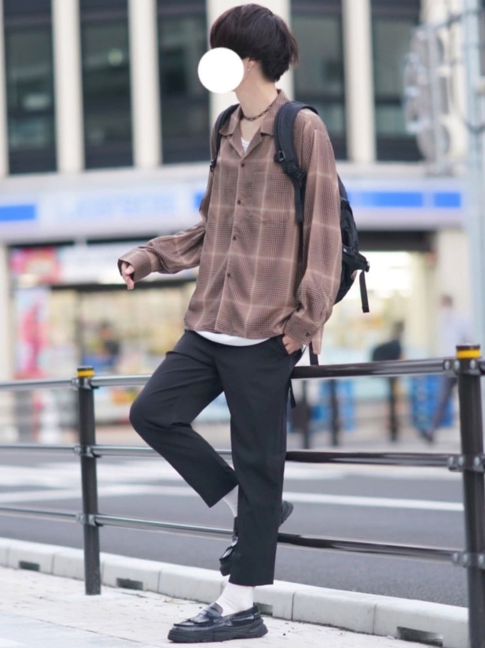 とっしーのシャツ/ブラウス「シャドウチェックオープンカラーシャツ」を使ったコーディネート