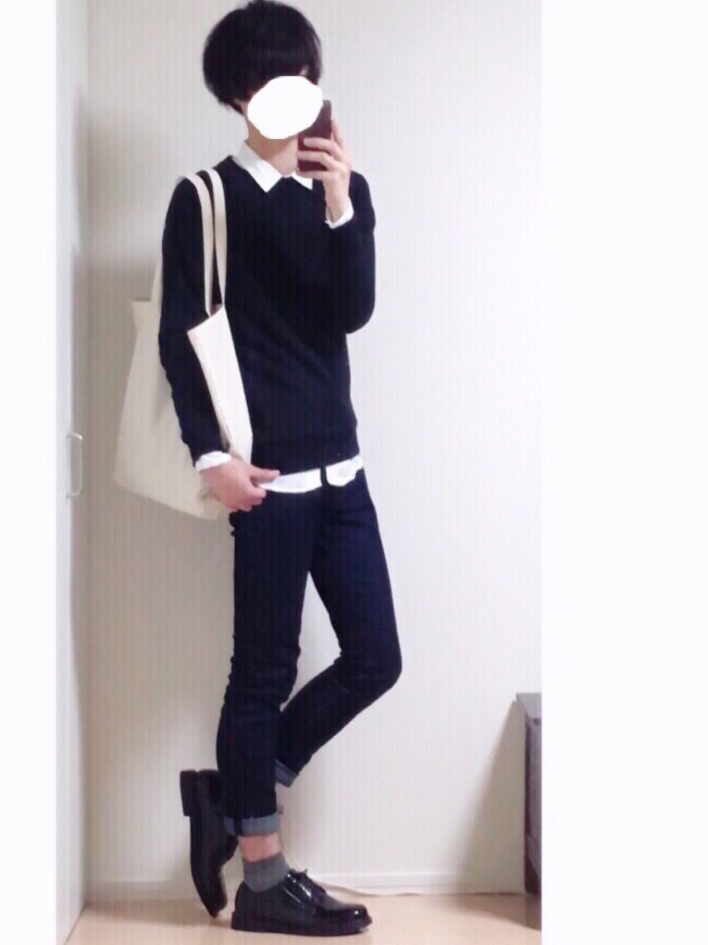 黒スウェット×白シャツでシンプルに♪(ᴖ◡ᴖ๑)