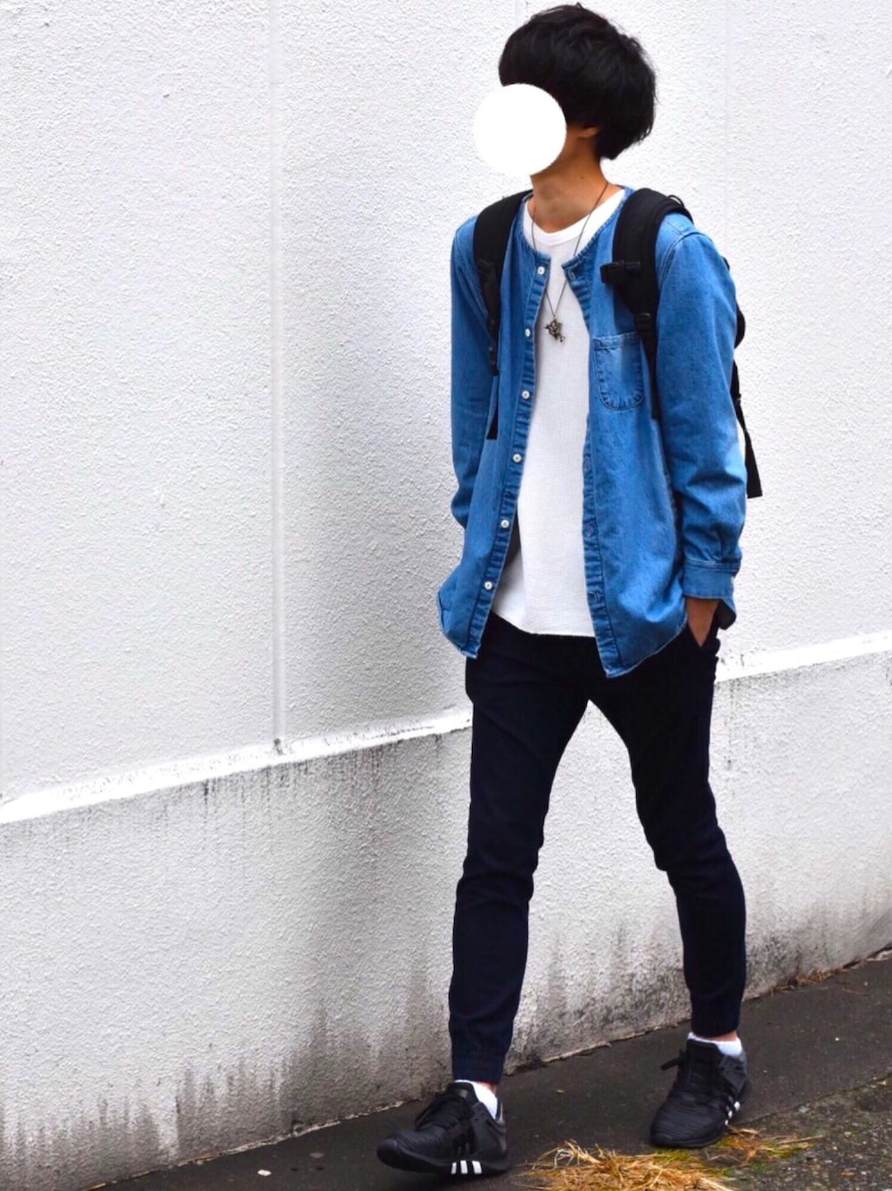 ノーカラーシャツ×ジョガーパンツ🙆🏻♂️⭕️ どちらもデニムでシンプルに👐🏻(・∀・)