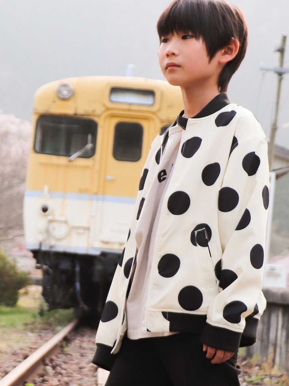 DILASHさんの水玉ジャンバー👍 薄手だから今の時期でも大活躍👀 雨が降ったら肌寒かったりスーパーに買いものに行ったら一枚いるもんね🥺 甘すぎず男の子でもかっこよく着こなせる😆👏