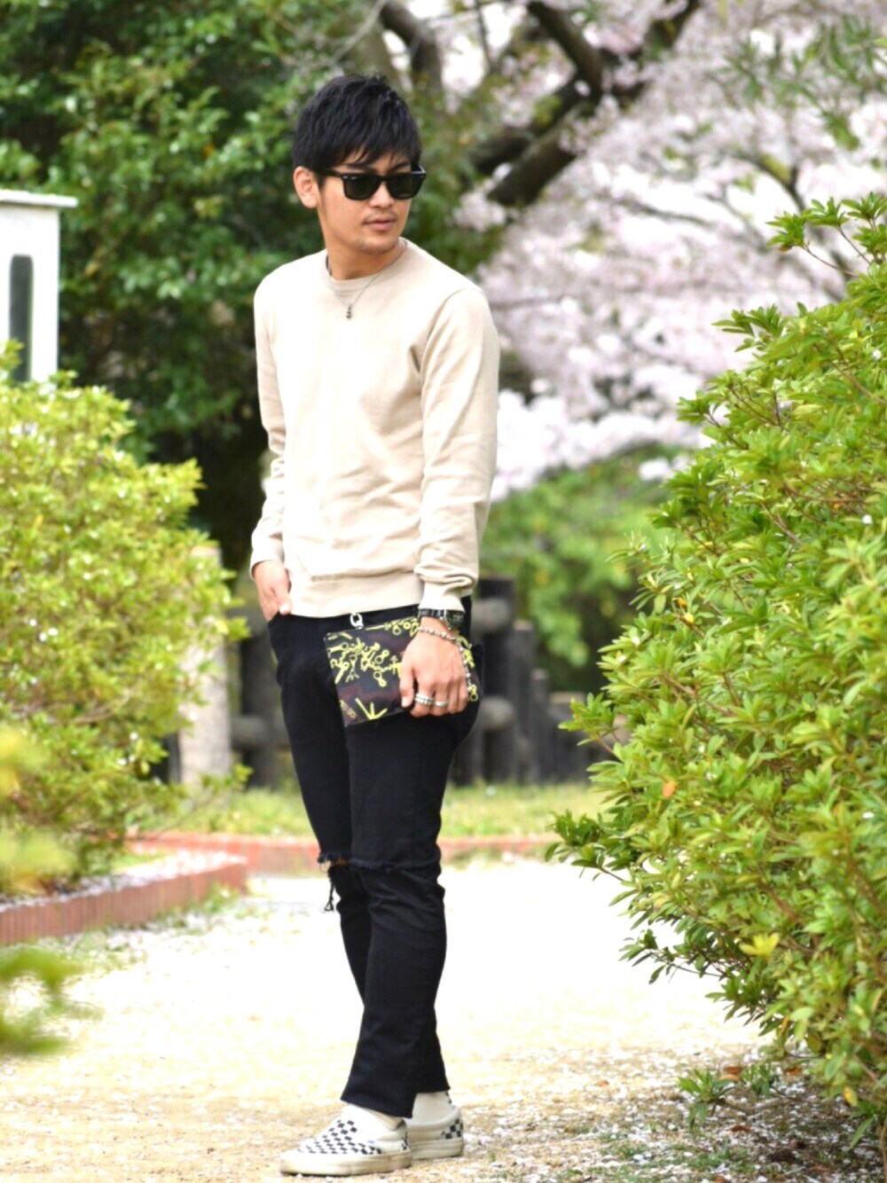 こんにちはー★ お久しぶりです。 ちょっと天気が悪かったのでサボっていました。。 桜が満開じゃー🌸 今宵は花見じゃー🌸 日本のわびさびですね🌵 かんなり久しぶりにベージュ着てみました。 色黒いので、全身茶色になってないか心配です。 春は気分がいいですねぇ^o^