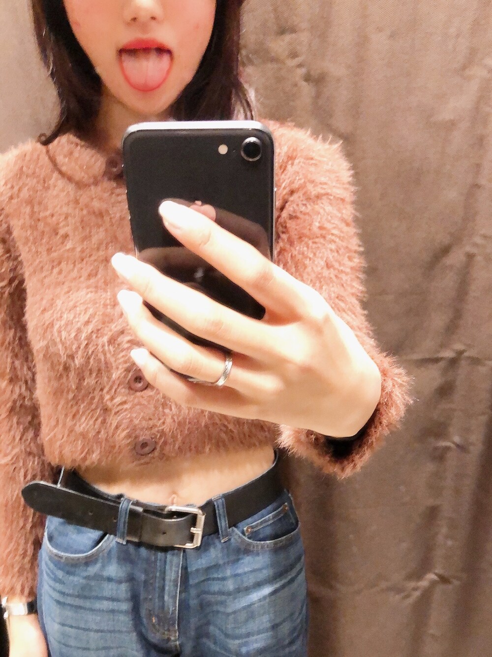 ブラウン系のトップスを着用したレディースの秋コーディネートの1枚目の写真