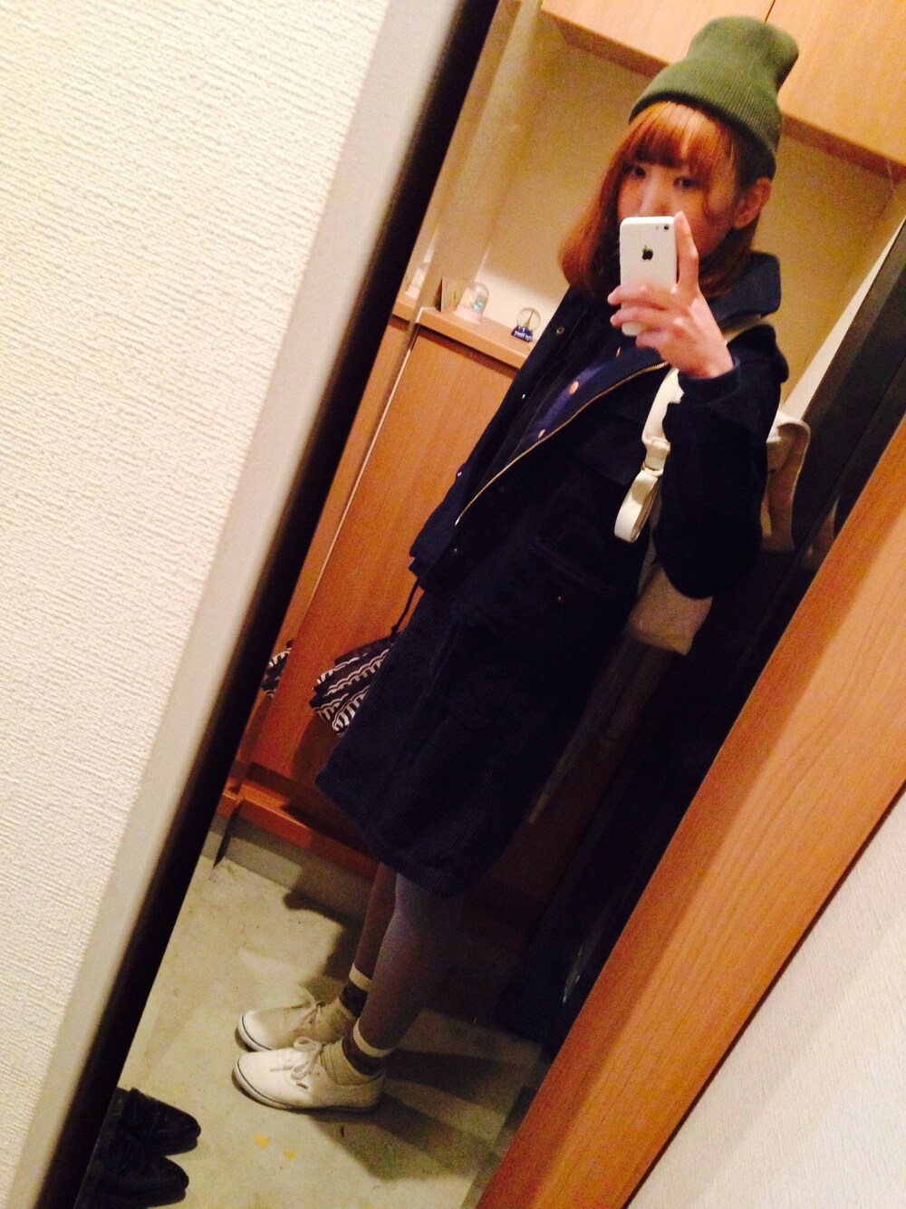 ニット帽☆KBF アウター☆BEAMS BOY カーディガン☆BEAMS BOY コーデュロイワンピース☆used ソックス、タイツ☆靴下屋 シューズ☆VANS バッグ☆無印