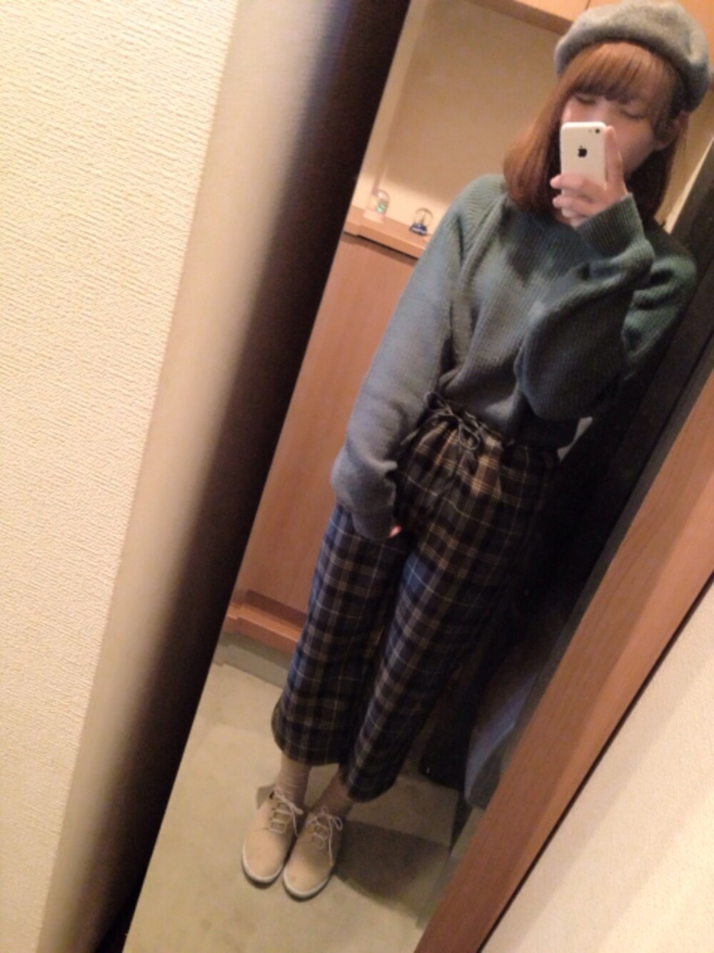 ベレー帽☆KBF ニット☆used パンツ☆beams boy ソックス☆母の物 シューズ☆KBF 今日のテーマは売れない画家。