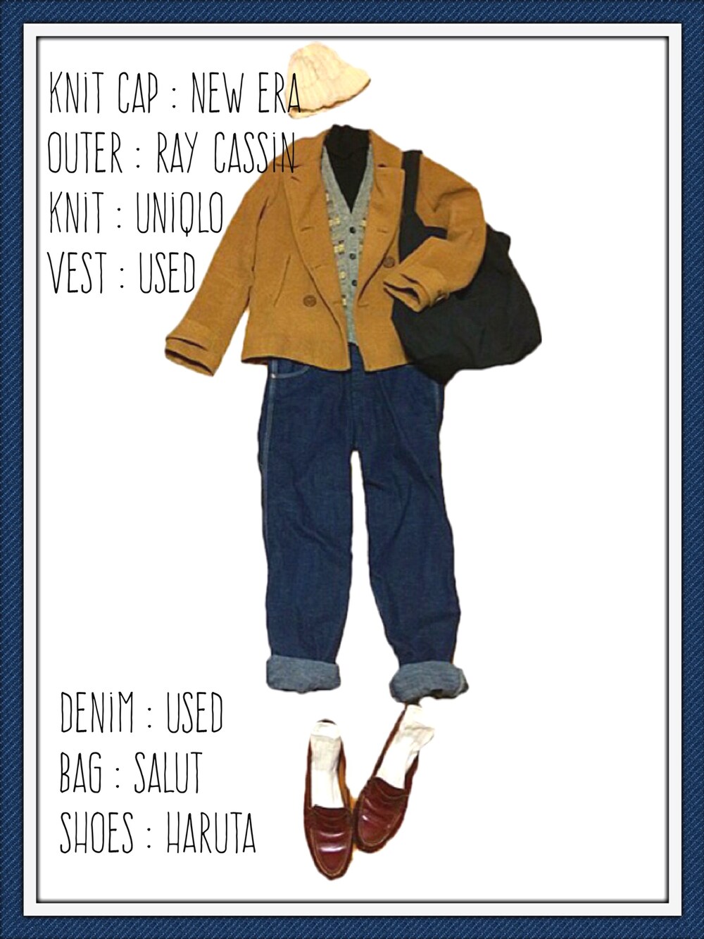 黒のタートルネックに ニットベストを重ねました。 ボトムスがだぼっとしてるので、 アウター含め、トップスはコンパクトに。