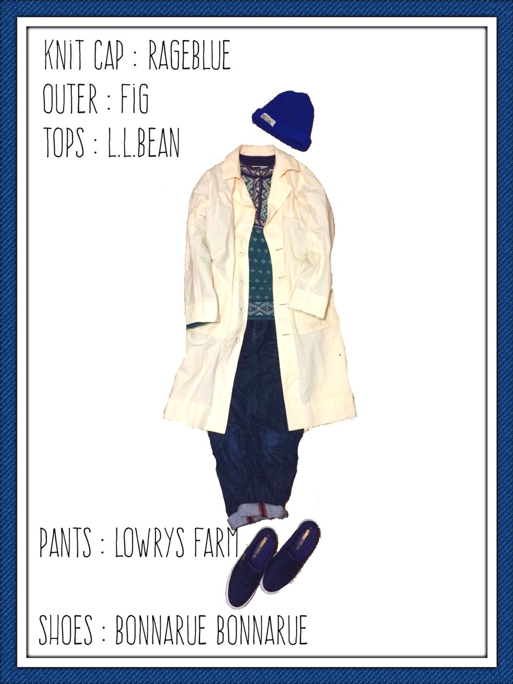 デニムにニットでラフに。 コートの白で女の子っぽさを ちょいと出しました。