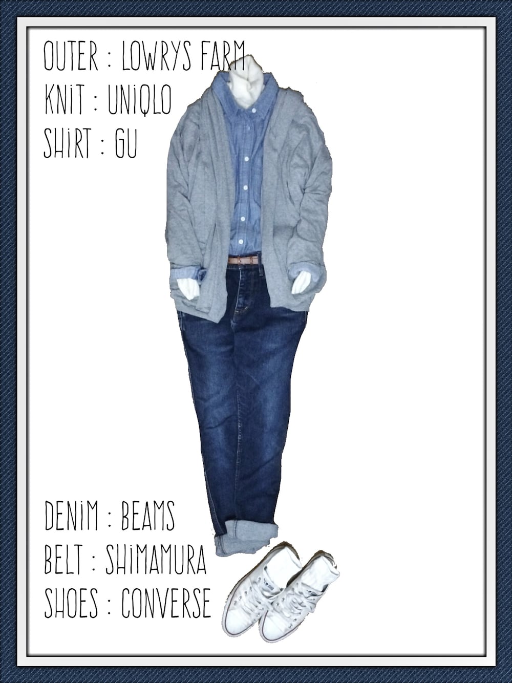 春らしいガーゼ素材のブルーシャツ。 シャツだけだと寒いので、 中にタートルネックをプラス。 今日は珍しくきれいめコーデ。