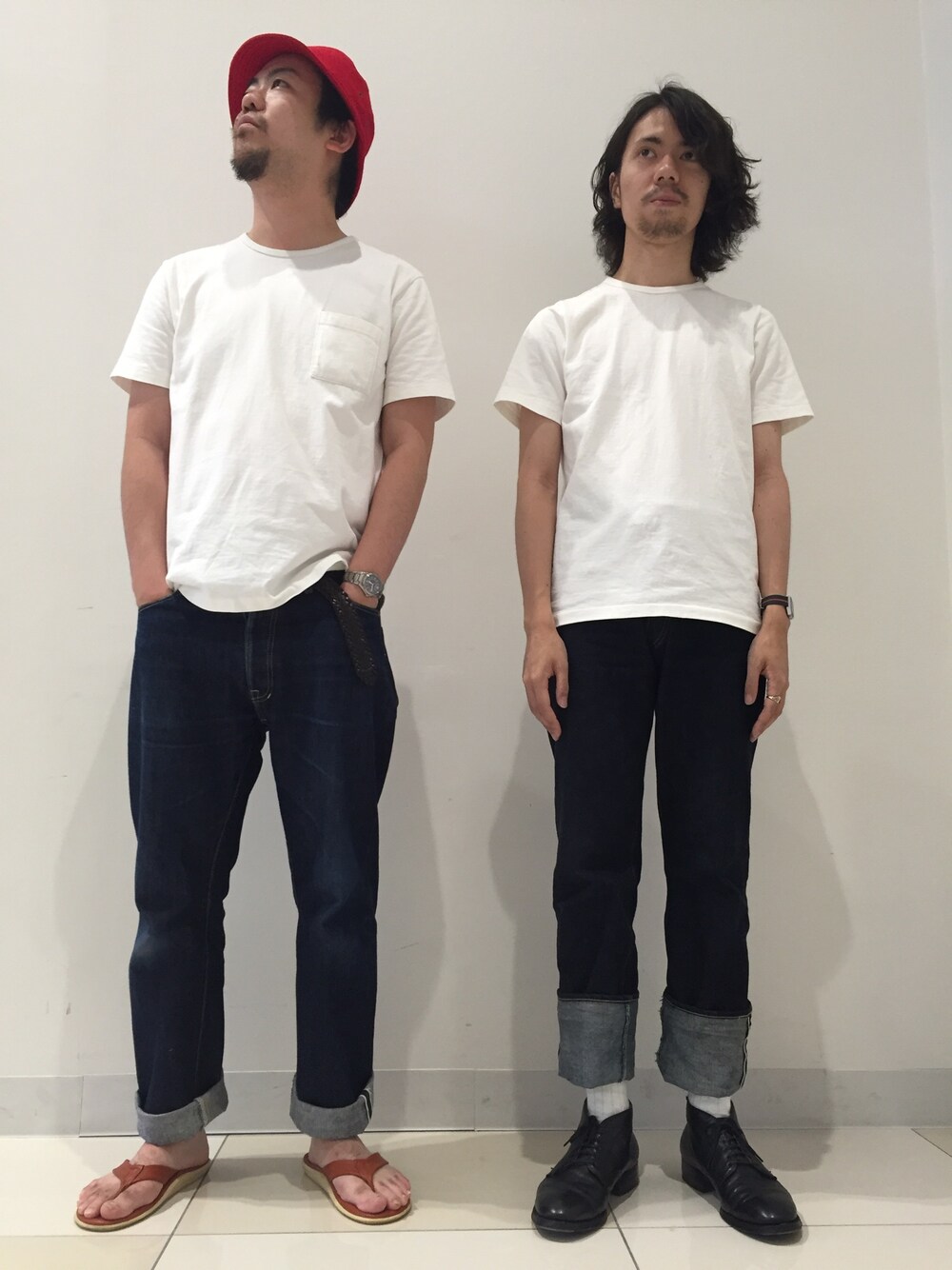 蒸し暑い日が続きますね! 今回はたまたまコーディネートがカブった店長とのツーショットです。笑 ジーパンに白Tは夏の制服です!