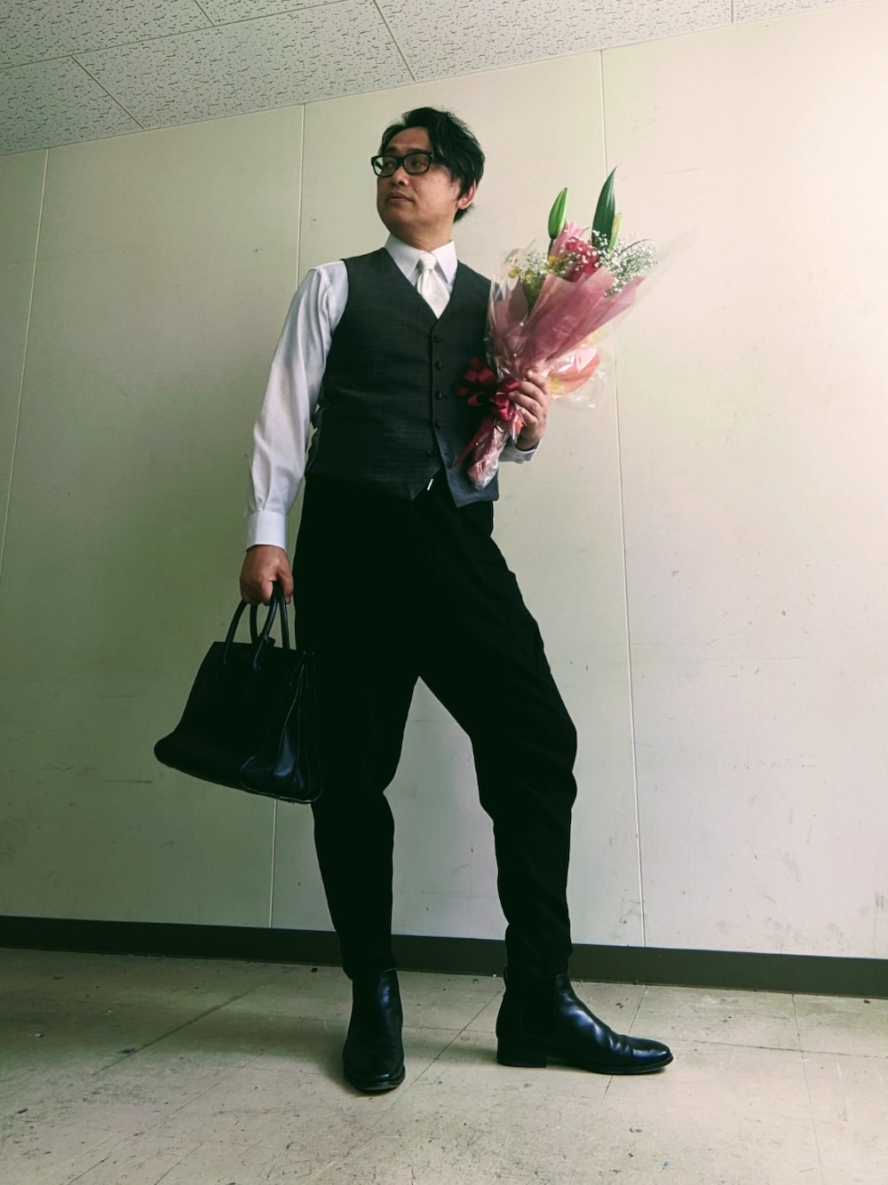 眼鏡教員(佐藤三矢)のハンドバッグを使ったコーディネート