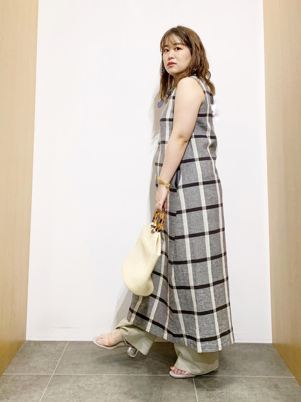 サトみ。(DOORS 札幌ステラプレイス)のワンピース「ブロックチェックノースリーブマキシワンピース」を使ったコーディネート