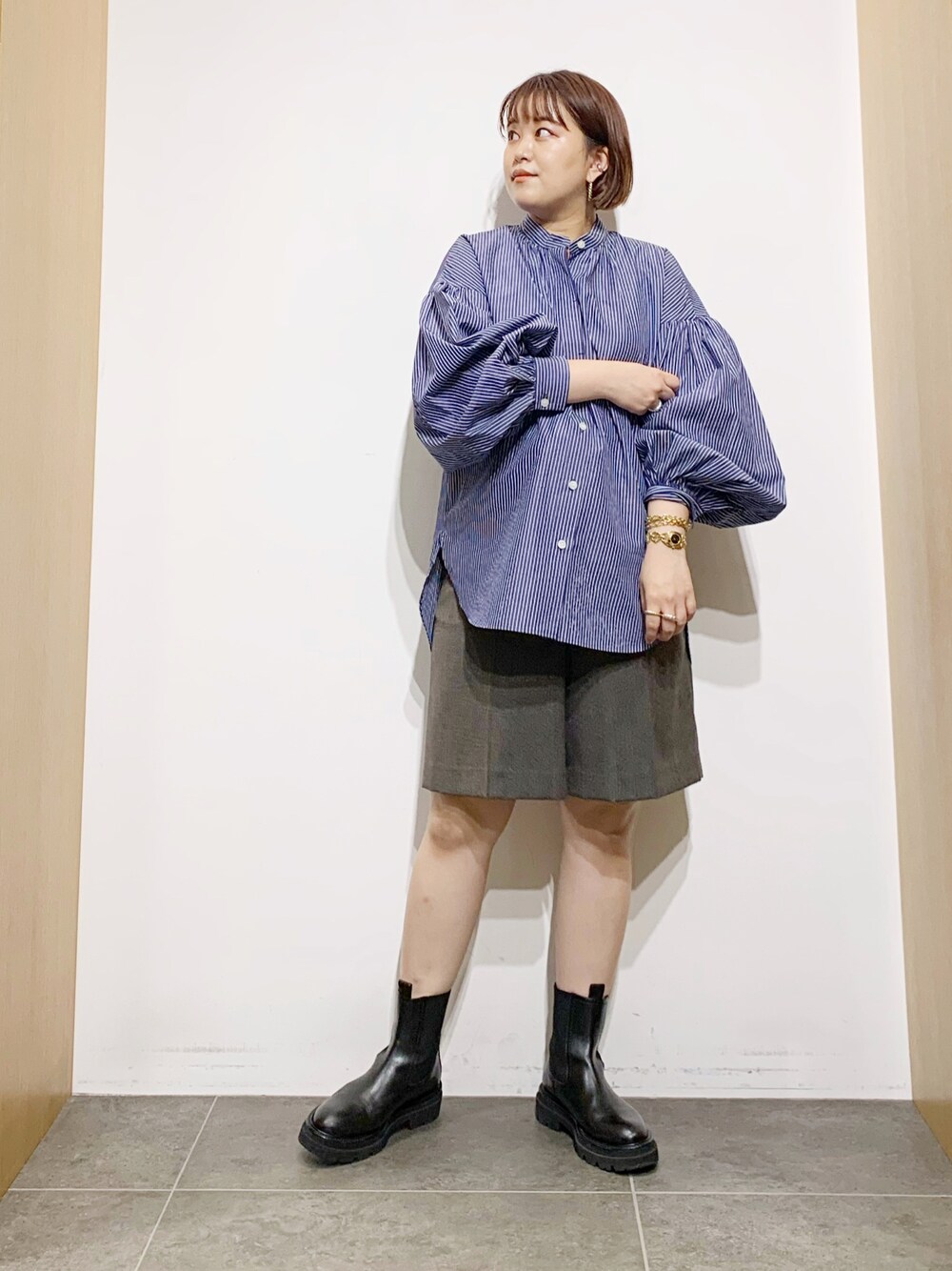 サトみ。(DOORS 札幌ステラプレイス)のシャツ/ブラウス「ボリュームスリーブバンドカラーシャツ」を使ったコーディネート