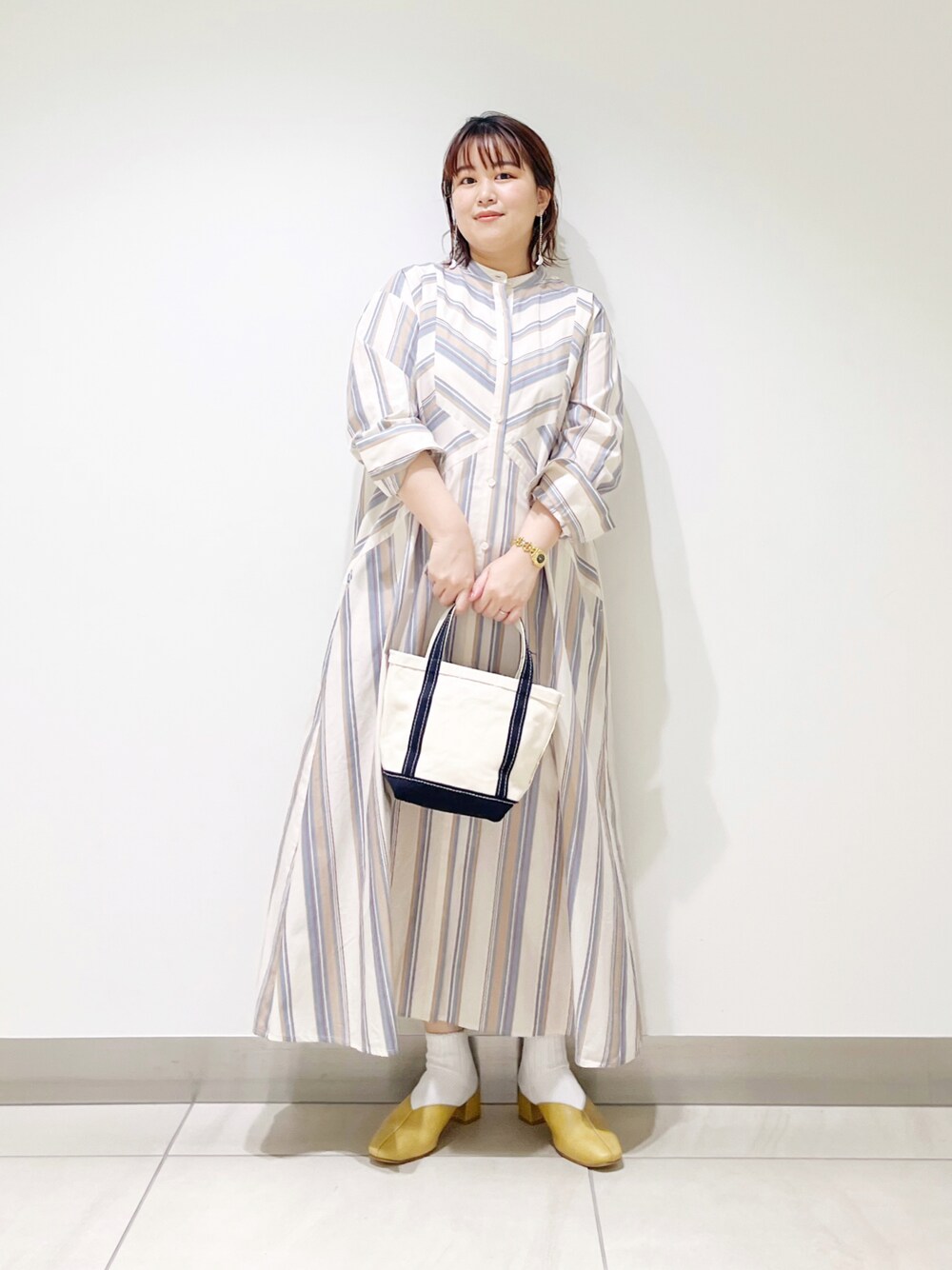 サトみ。(DOORS 札幌ステラプレイス)のワンピース「ストライプAラインシャツワンピース」を使ったコーディネート